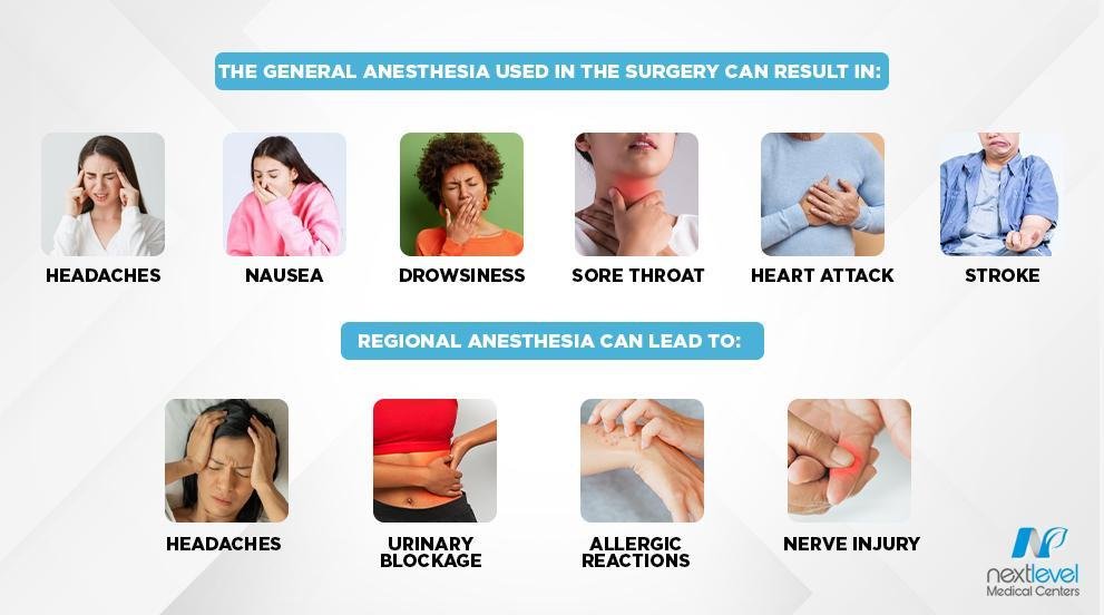 The general anesthesia used in the surgery can result in: