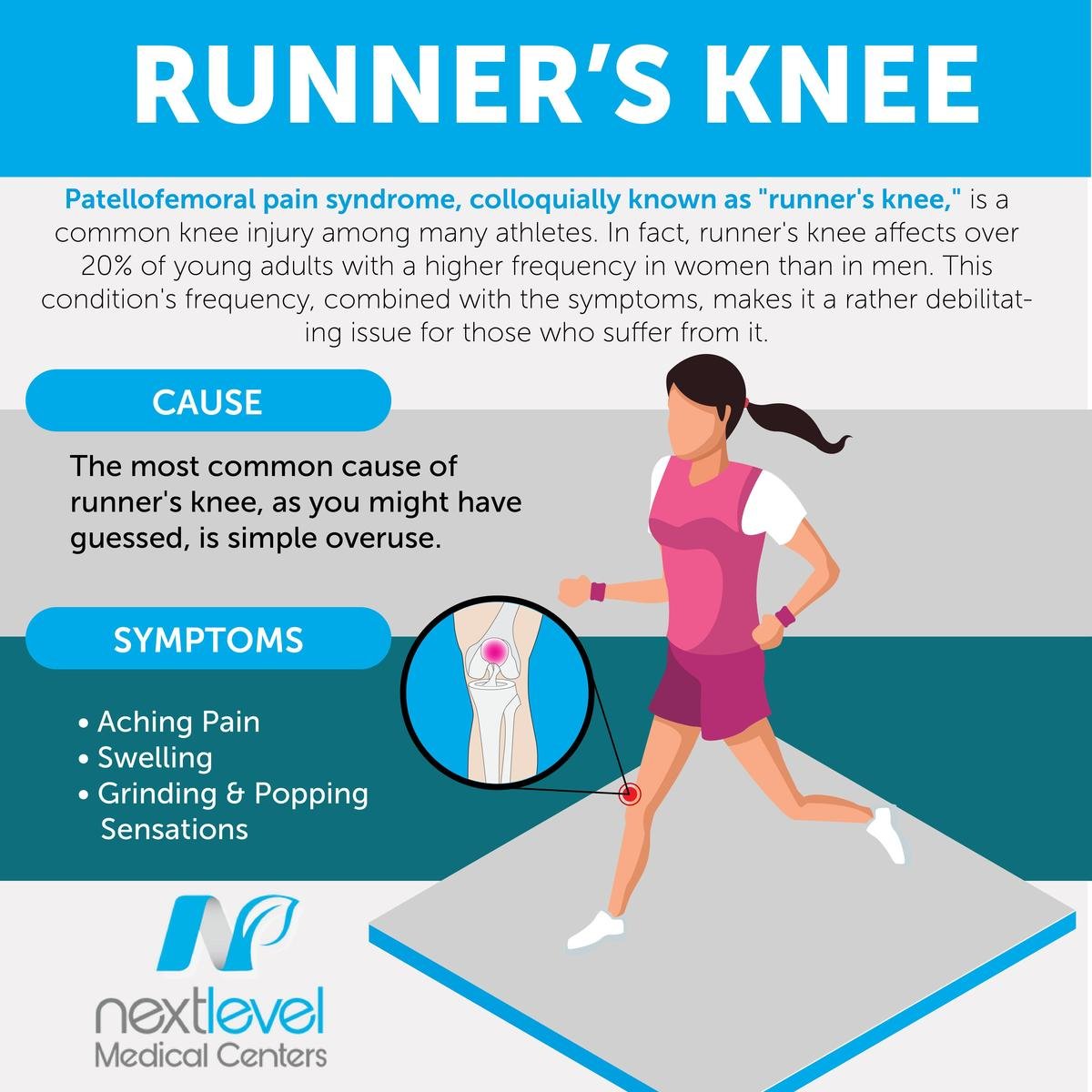 Patellofemoral pain syndrome, colloquially known as “runner’s knee,” is a common knee injury among many athletes. In fact, runner’s knee affects over 20% of young adults with a higher frequency in women than in men. This condition’s frequency, combined with the symptoms, makes it a rather debilitating issue for those who suffer from it. The exact cause of runner’s knee is fairly obvious but involves a lot more detail than you might expect.